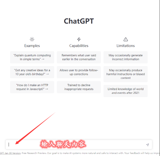 只要在聊天框中输入中文/英文以及更多国家的语言,发送回车,就可以使用了,如果chatgpt没回答完整,或者你还想让他继续解释,回答继续,他就会接着答了,更多好玩的可以自己研究。