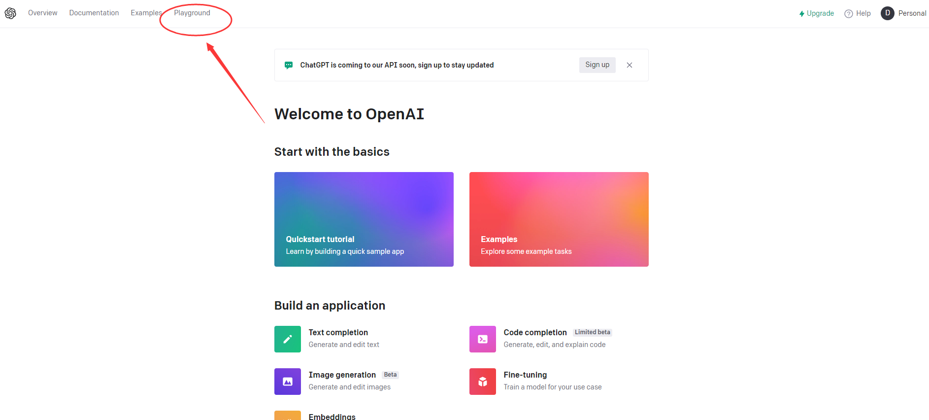 2、登录成功后,点击上方的Playground